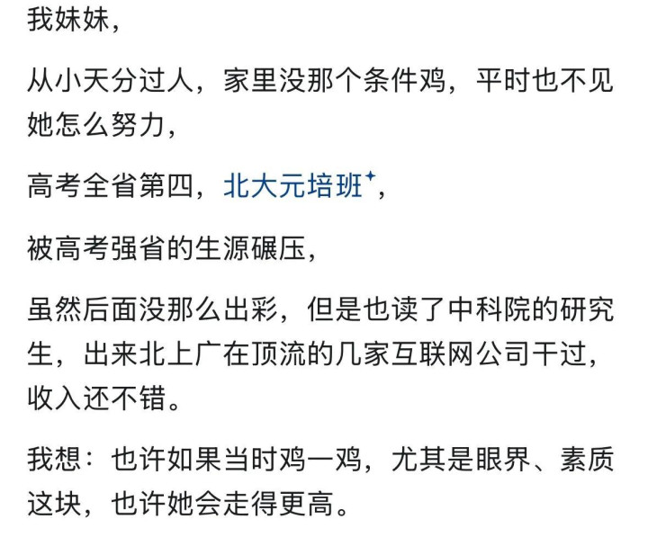 也许如果当时鸡一鸡,尤其是眼界、素质这块,也许她会走得更高。